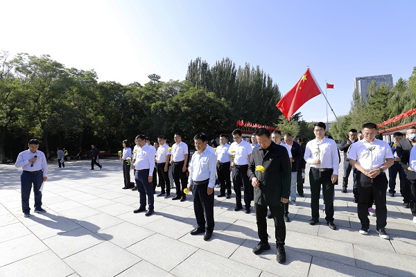 致敬革命先烈,赓续红色血脉。9月29日下午,位于呼和浩特青城公园的人民英雄纪念碑巍峨耸立,纪念碑上“烈士们永垂不朽”7个金字熠熠生辉。jnty com全体职工在碑前庄严肃立,伴随着深情的《献花曲》,为烈士们敬献花篮,向英勇献身的革命先烈默哀、鞠躬,表达对先烈的深切缅怀和崇高敬意。