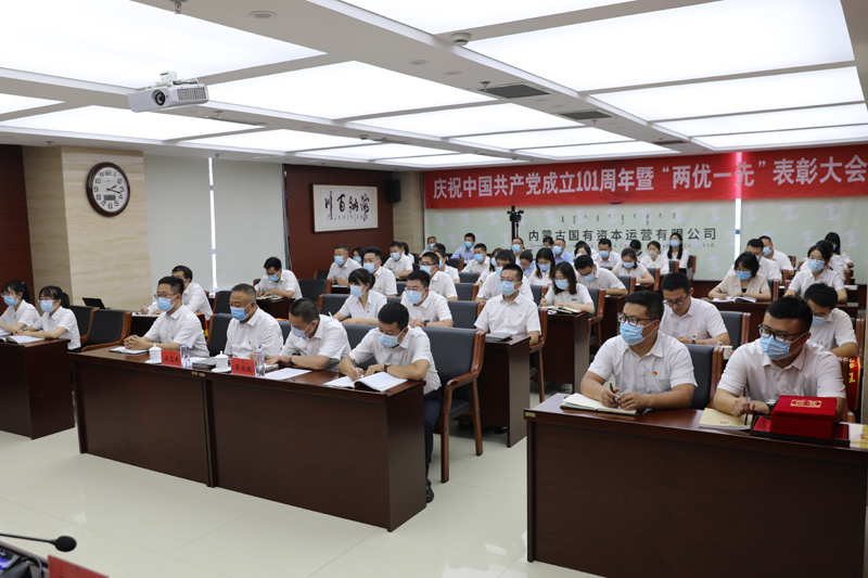 为热烈庆祝中国共产党成立101周年,7月1日,内蒙古jnty com党委召开了“两优一先”表彰大会。自治区国资委党建联系点、资本运营与收益管理处党支部赵静同志到会指导,公司及分子公司全体党员参加了会议。