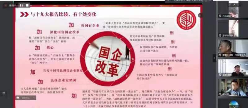 为推进内蒙古jnty com全体干部职工进一步学习领悟党的二十大报告的深刻内涵、精神实质和实践要求,把学习宣传贯彻党的二十大精神与分析形势、规划未来、执行政策、推进工作结合起来,11月2日,公司党委组织召开学习党的二十大精神培训会,公司全体干部职工、分子公司全体党员共99人按时参加培训。根据疫情防控工作要求,培训会议线上召开。
